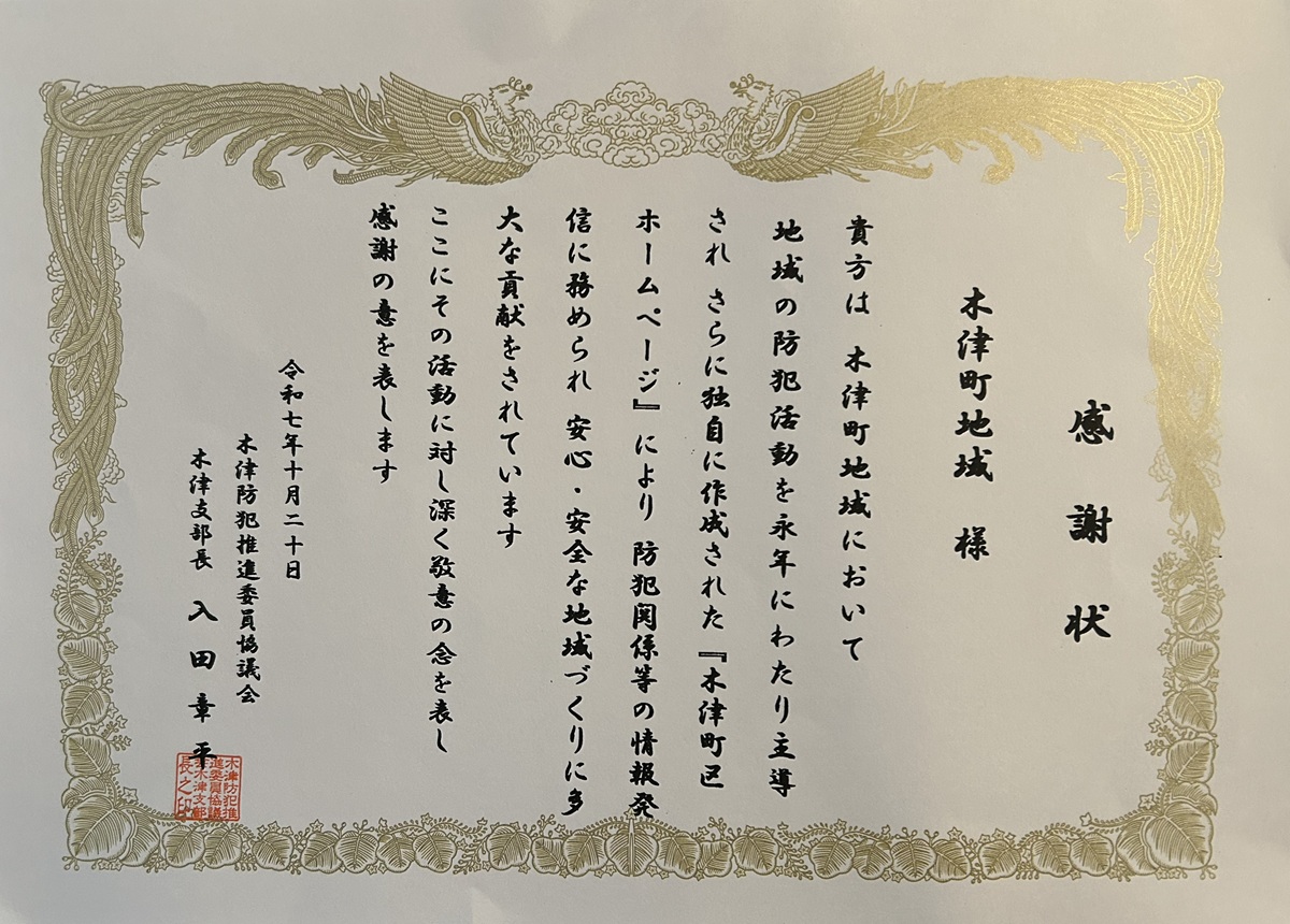 木津防犯推進委員協議会より、木津町区に対して日頃の防犯活動及び、取組みについて