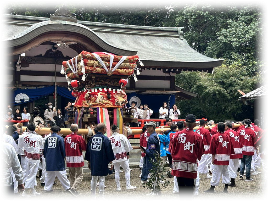 26日(日)午前には、木津町区内の「西町」御輿太鼓が田中神社にて拝殿廻りそして、