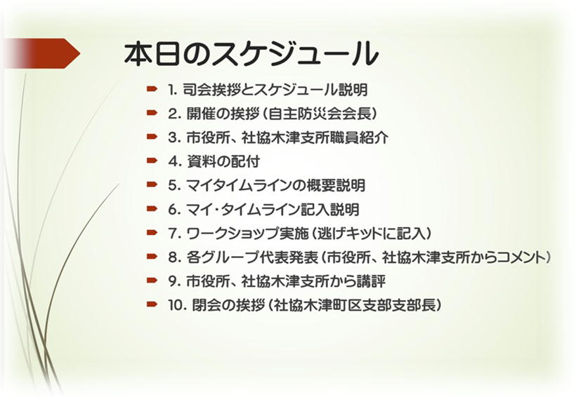 ☆New 木津町区自主防災会、社会福祉協議会木津町区支部共催にて、マイタイムラインワークショップを開催いたしました。