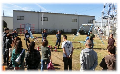 ・屋外:消火器・消火栓の取り扱い、起震車による地震体験