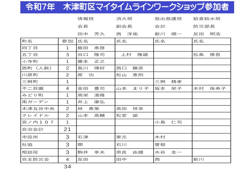 木津町区自主防災会として、今後とも防災に関する企画を行い、災害に強い木津町区を目指して行きます。