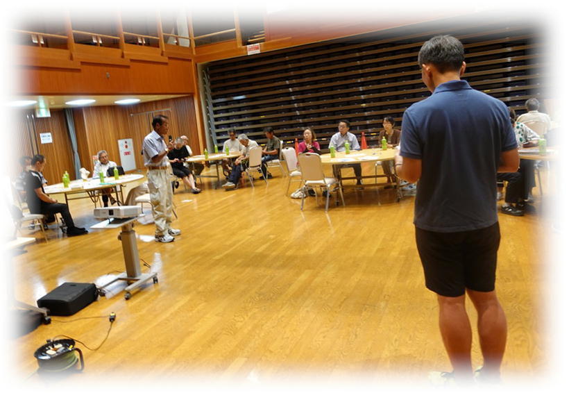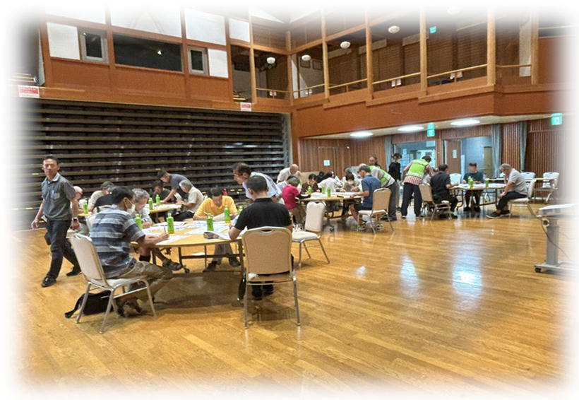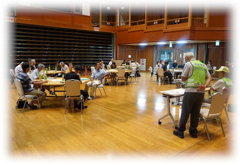 今回の研修目的は、災害時の被害を最小限に食い止めるための、防災知識を身に着けていただくことと、もう一つ、木津町区住民皆様との親睦を深め、災害時、自助は当然ながら、共助、ともに助け合う精神を養って頂くことも大事な目的です。